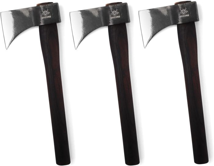 - 3.7″ Flat Blade: The 3.7-inch flat blade is designed for precision, Its flat edge allows for a stable hit on the target. The blade is made from 1065 manganese steel, which helps the axe maintain its edge and withstand repeated impacts.