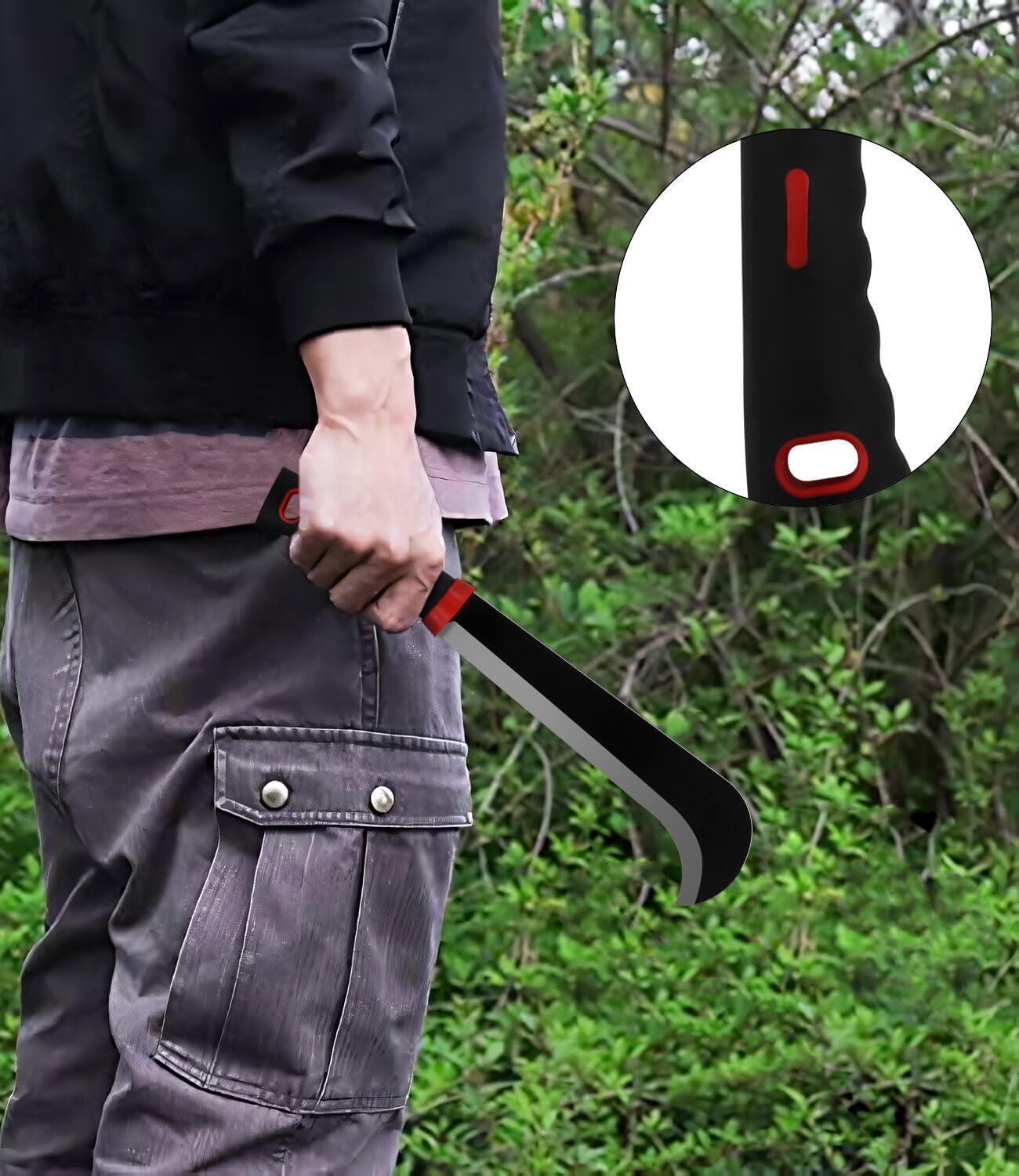 - Durability Construction: Crafted from 3CR13 stainless steel, the blade of this machete boasts excellent durability and edge retention, ensuring it can withstand tough cutting tasks without easily dulling or breaking. The PE plastic handle provides a sturdy grip for precise control, even in wet or slippery conditions.