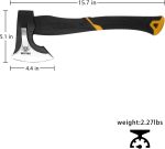 - Size and Weight: This splitting axe is 15 inches in total length with a 4.4-inch blade and weighs 2.3 pounds.
