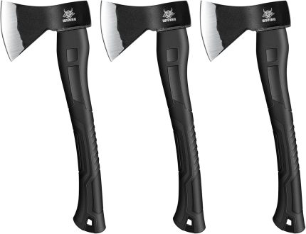 Throwing Axe – 3 Pack, 15-inch Camping Hatchet, Carbon Steel Splitting Axe, Fiberglass Handle, with Anti-Slip & Shock Reduction Grip for Axe Throwing, Kindling, Chopping, and Wood Splitting